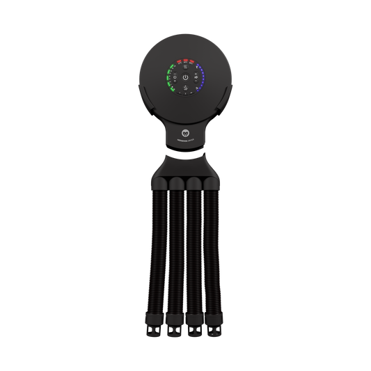 Our patented technology creates a high powered airflow that pushes the humidity out of the fabric in the shoes or gloves you are drying.